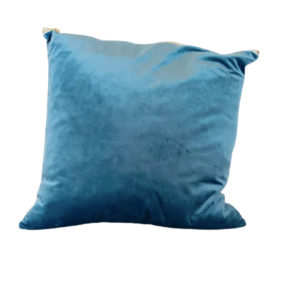 Cerulean Blue Pillow With Gold Zipper