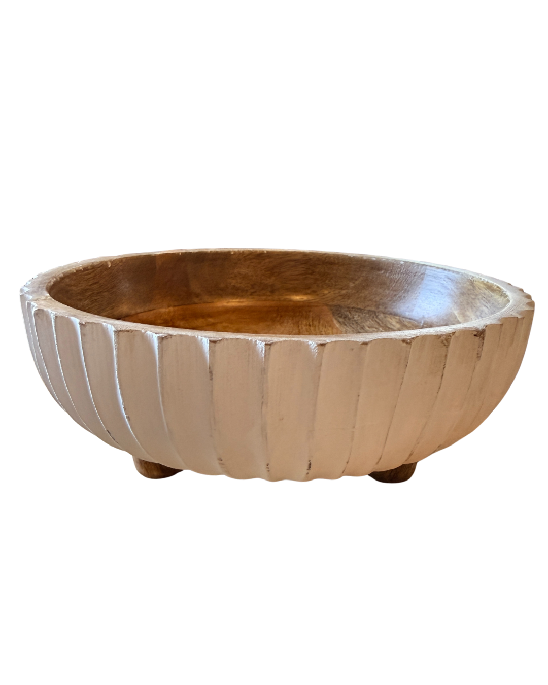 Fluted Wooden Pedestal Bowl