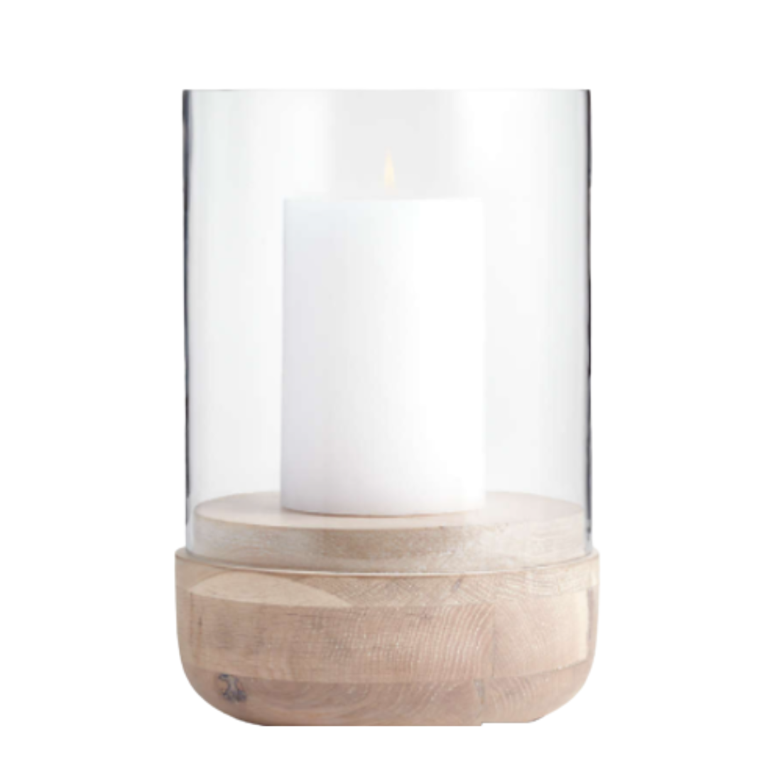 Large Wood & Glass Hurricane Candle Holder