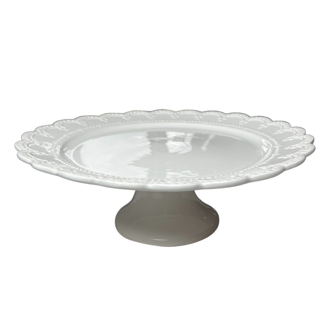 Scalloped Edge White Cake Stand