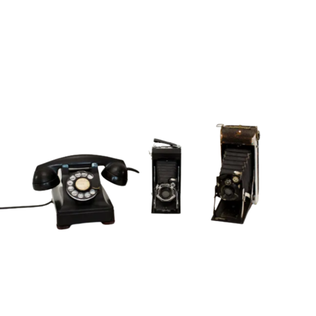 Vintage Phone, Cameras, Clocks