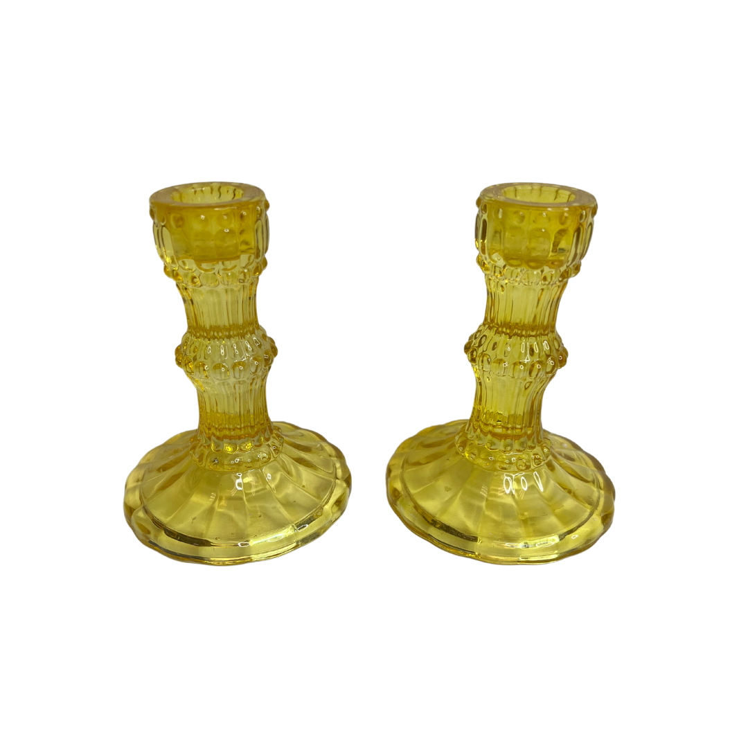 Vintage Yellow Glass Candlestick